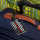 A custom name distressed style firefighter styled American flag luggage tag. The thin red line running across the center is representative of firefighter professionals. Follow the directions in the sidebar to add your name and to have it look perfect underneath the flag.