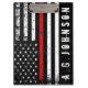 A custom name distressed style firefighter styled American flag office clipboard. The thin red line running across the center is representative of firefighter professionals.