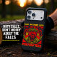 A dedicated firefighter stands proudly, that celebrates their commitment to helping others. The design highlights the Fire Department, showcasing the unity and bravery of those who serve the community.
