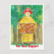 A thank you for your support postcard for firefighters decorated with a young boy dressed in firemen's gear with bright red hat and holding a thank you sign in a forest of trees illustrated with watercolor. You can change the message to fit your needs.