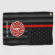 A custom name/ monogram Firefighter flag golf towel. The thin red line running across the entire item is representative of American Firefighters and fire rescue.