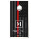 A custom name/monogram Firefighter flag cornhole set. The thin red line running across the entire item is representative of American Firefighters and fire rescue.