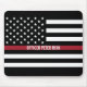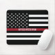 Show your support with this black and white firefighter thin red line American flag mouse pad.
