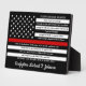 COPYRIGHT © 2020 Judy Burrows, Black Dog Art - All Rights Reserved. Firefighter's Prayer Personalized Thin Red Line plaque