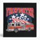 Large red and blue Firefighter over a center of stars and stripes with a big red firetruck! A very bright and patriotic firefighting design for firefighters! Makes a great firefighting gift for any firefighter or firefighting supporter!