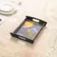 This is a well made, sturdy wooden tray with a flawless black finish and lovely map on the tray surface. It is both vintage & modern at the same time. Looks exactly like the photo; does not disappoint. So nice to find something of quality individually made and not the mass-produced 'shabby chic' merchandise seen in stores. I am so pleased to be able to give this to my college-age niece for her birthday. This can be used as a tray to hold jewelry or toiletries, or hung on the wall as art. The map surface is sealed (it is slightly shiny) so would be moisture resistant. It is well worth the asking price but I was able to apply a sale code as well. Very happy with my purchase. Map is crisp & clear and sealed with a water-resitant finish.