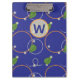 Glowing fireflies dance among floating leaves above a deep blue background. Orange and silver rings create an effect like stylized ripples to give the base a water-like feel. Customize the monogram on this clipboard with your initial to make it uniquely your own.