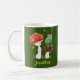 Cute fairy tale inspired illustration of a frog prince sitting on a mushroom and watching the fireflies. Whimsical woodland frog themed mug is customizable and allows you to add your name!