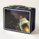This is a standard metal lunchbox that appears to work just fine. We designed this box ourselves with an uploaded photo and custom text on the front and back. It looks absolutely beautiful except the front of the lunchbox is not centered like it shows in the photo. The print borders don't align with the inset flat part of the box where the preview photo online showed it perfectly centered in there. The back looks nice and centered though.