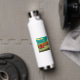 The bottle looks even better in real life. The ice cubes I put in lasts all day! I have my bottle with me all the time. It's summer and having something cold to drink feels amazing. With this bottle I always have something super cold. I have only tried the hot drink once and it lasted a long time as well. The color blue is a navy blue and the white printed on it is vibrant. It printed perfectly. I love my personalized smile water bottle.