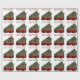 Funny firefighter holiday gift wrap featuring fireman Santa Claus and a fire engine with a Christmas tree. Ho! Ho! Hose!