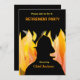Unique retirement invitation for a fireman or Fire Chief . Design has a Firefighter with flames in the background and the wording for a retirement party invitation. Easy to customize with your party details.
