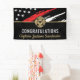 This design features a firemen's flag with black and white stripes, and a thin red line stripe as well. "Congratulations" and a fireman's badge sits above the name of the graduating or retiring firefighter, lieutenant, or chief. Celebrate in style!