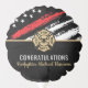 This design features a firemen's flag with black and white stripes, and a thin red line stripe as well. "Congratulations" and a fireman's badge sits above the name of the graduating firefighter. This design also works great for retiring firefighters, lieutenants, or chiefs. Celebrate in style!