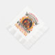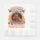A bold paper napkin showcasing a heroic firefighter in full gear, including a helmet, uniform, and hose, embodying bravery and strength for a striking table decoration.
