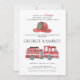 This Fireman Retirement Party Invitation is designed to match our Minimal Firetruck themed collection! This theme is perfect for any retiring firefighter with soft tones of red and gray. This design features a rustic red watercolor fire engine truck and helmet, along with a matching red abstract backside pattern.
