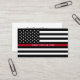 This is a professional business card for firefighters. The front of the card features a black and white American Flag with stars and stripes and the thin red line with your monogrammed name in white typography for you to personalize. The back of the card has black text on a white background and includes all of your contact information, name, work place, phone, email, website and address.