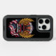 This custom IPHONE 15 features A red firetruck with golden wings is surrounded by an American flag and stars. symbolizing bravery and heroism,