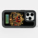 This custom IPHONE 15 features A digital illustration of a firetruck with flames and gold accents. symbolizing bravery and heroism,