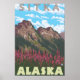 Fireweed & Mountains - Sitka, Alaska - Vintage Travel Poster was created in 2007. This image depicts scenes from Sitka, AK.