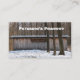 This business card is advertising firewood for sale. Wood is stacked to the ceiling in the shed which is surrounded by a wintry scene of bare trees and snowy ground. All text can be customized to suit your particular business.