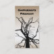 This business card is advertising firewood for sale. It features an artistic black abstract pattern of the top of a tulip tree in winter with bare branches in silhouette set on a brown and bronze metal gradient. Another tree is on the back along with the pertinent business information. All text can be customized to suit your particular business.