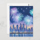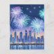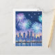 Firework Cityscape | Blue Lofi Digital Watercolor Postcard