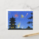 Illustration of firework display and silhouette of pagoda and trees. Copyright: William Donahue