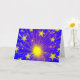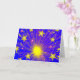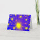 A firework exploding in a shower of dazzling gold and pink stars against a blue sky. Greetings card with a yellow, pink, blue and white customizable design for you to personalise with your own text, pictures and ideas. Created using original photographs and digital techniques by Jess Perry.