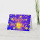 A firework exploding in a shower of dazzling gold and pink stars against a blue sky. Greetings card with a yellow, pink, blue and white customizable design for you to personalise with your own text, pictures and ideas. The text can easily be changed using the template provided or click the 'Customize It' button to make further alterations. Created using original photographs and digital techniques by Jess Perry.