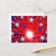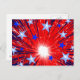 A firework exploding in a shower of dazzling blue and white stars against a red and blue sky. Postcard with a red, blue and white customizable design for you to personalise with your own text, pictures and ideas. . Created using original photographs and digital techniques by Jess Perry.