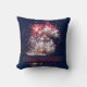 Fireworks 4th of July Independence Day cotton throw pillow. 'Happy 4th Of July' phrase. Be patriotic and celebrate America with this beautifully designed trendy, modern living room decor. Celebrate in style with this awesome design. Red white and blue colors. Image copyright Marg Seregelyi Photography.