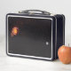 This is a standard metal lunchbox that appears to work just fine. We designed this box ourselves with an uploaded photo and custom text on the front and back. It looks absolutely beautiful except the front of the lunchbox is not centered like it shows in the photo. The print borders don't align with the inset flat part of the box where the preview photo online showed it perfectly centered in there. The back looks nice and centered though.