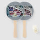 This American, flag image, is highlighted against, fireworks bursting, in a colorful display of, red, white, blue, and yellow, flares-in a cloudy, twilight sky, of slate-blue.