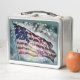 This is a standard metal lunchbox that appears to work just fine. We designed this box ourselves with an uploaded photo and custom text on the front and back. It looks absolutely beautiful except the front of the lunchbox is not centered like it shows in the photo. The print borders don't align with the inset flat part of the box where the preview photo online showed it perfectly centered in there. The back looks nice and centered though.