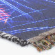A quality printed throw has its advantages. This is a much finer weave throw than its loopier cousins, and though lighter, it is worth the investment for custom room accessorizing. The back is much prettier than the typical brown, and the fringe on the long sides very vivid, the selvage nicely done. Before photographing, I washed the throw in cold water, delicate, with a thicker woven throw the same size. On tumble dry low, this throw was dry in half the time as the other. This is a very practical quality if you use throws for furniture covers or to wrap up in frequently. The sleekness of the fabric makes it a great layer for accenting or protecting without the feeling of sitting on too much stuff. Perfect for napping or when you feel a light chill coming on. The color printing is beautiful and on this fabric, matched the design and color of my Photoshop image. This is an advantage for blending room fabrics and colors. The fringe on the short sides prints the colors from the design image and therefore varies from the side fringe. I streaked a white fractal line through the plaid pattern to give the illusion of weaving. This printed as crisp as an illusory thread, and put some white in the short side fringe, showing another advantage of print vs loomed- for artistic purposes, line lines, detail, and color integrity can be planned and preserved. My loomed throws have color limitations and more of a needlepoint texture. Print throws reproduce an exact image. The throw felt a little stiff straight out of the package, but this went away in the first delicate wash. Of course I searched the wash water for ink or bleeding and there was none.