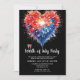 Colorful fireworks in the shape of a heart and two champagne glasses on black background