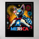 Fireworks Patriotic Devon Rex Cat Merica Poster