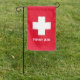 Garden Flags (Outdoor Flags): First Aid & White cross design with text easy to customise. For your events, help station, medical staff party, emergency corner ....