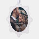 Celebrate a joyful 1st wedding anniversary as Mr & Mrs with a custom 2 photo paper keepsake Christmas ornament. The wording and pictures on this template are simple to personalize can be different or the same on front and back. (IMAGE PLACEMENT TIP: An easy way to position a photo exactly how you want is to crop it before uploading to the Zazzle website.) The modern minimalist black and white overlay design features the couples names and wedding date in typerwriter typography and two images of your choice. This unique paper snowflake ornament is a stylish way to comemmorate one year of marriage and adds an elegant touch to the married couples' Xmas home decorations. Happy First Anniversary, Congratulations & Merry Christmas!