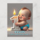 Picture depicts a baby boy's first birthday. The baby is embracing a lit candle celebrating his first year in life. The boy is showing a big smile. Let's make this party so unforgettable.