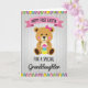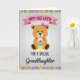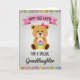 This card shows a cute, bear-like character in warm brown centered on a tall layout, with rosy cheeks and a small smile that feels like it’s meant for a close friend. A bright pink bow sits on its head, adding a sweet, affectionate touch as it hugs a striped egg in bands of pink, purple, blue, green, and yellow 🐰. Near the top, a curved pink ribbon banner stretches across with a cheerful greeting in light lettering that stands out clearly. Near the bottom, a second line of text sits neatly under the character in a matching pink tone, set up like a note meant for someone special. The background looks like pale wooden panels with a soft texture, giving the scene a gentle, homey setting. Along the top and bottom edges, pastel egg garlands form a frame, each oval decorated with simple patterns that echo the striped egg in the character’s arms 🌷. The upper and lower garlands alternate soft colors and small motifs against the light wood backdrop.