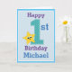 First Birthday Boy, Blue with Yellow Star Card