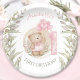 First Birthday Cute Teddy Bear, pink Heart Balloons and greenery Paper Plates for 1st Birthday of beary cute baby girl. :) Fully editable. Matching items are available in my store.