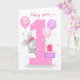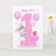 Cute rabbit popping from number One letter with presents and pink balloons, Happy birthday little girl.