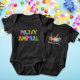 Celebrate your little one's wild adventure with our First Birthday Party Animal Safari Black Baby Bodysuit. This adorable first birthday shirt is the perfect gift, featuring colorful neon "Party Animal" text on the front along with playful party animals on the back. Customize it with your child's name on the back, creating a memorable and charming outfit for their special day.