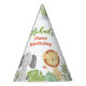 Featuring an adorable lion, leopard, baby elephant, giraffe, zebra and monkey, this flat design Party Hat will be a great addition to your child's party.