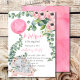 First Birthday Pink Balloon Eucalyptus Elephant Invitation