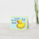 Sweet customizable rubber ducky on a blue and polka dot background.