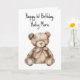Cute watercolor teddy bear on a child's first birthday card. Name and sentiment can be changed. AI assisted graphic purchased with commercial use. Artwork: FreyasDigitalCrafts